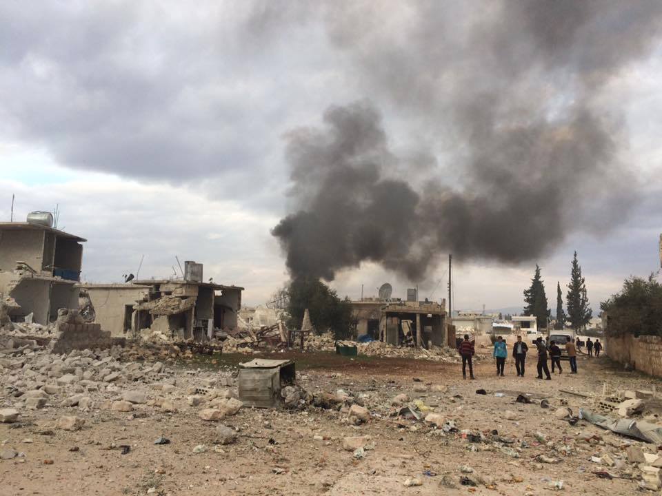 The White Helmets at the scene of an airstrike on Al Sukkari, Aleppo on January 9th 2016 which killed eight civilians – including five elderly men (via White Helmets)