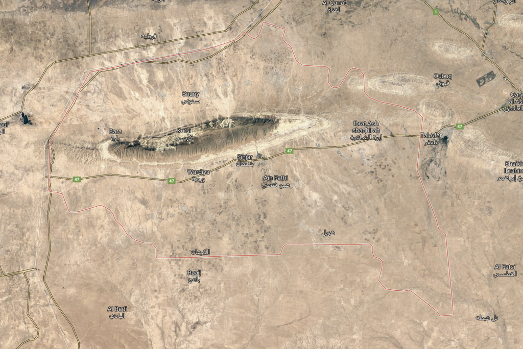 Sinjar ( سنجار ) district outlined in red