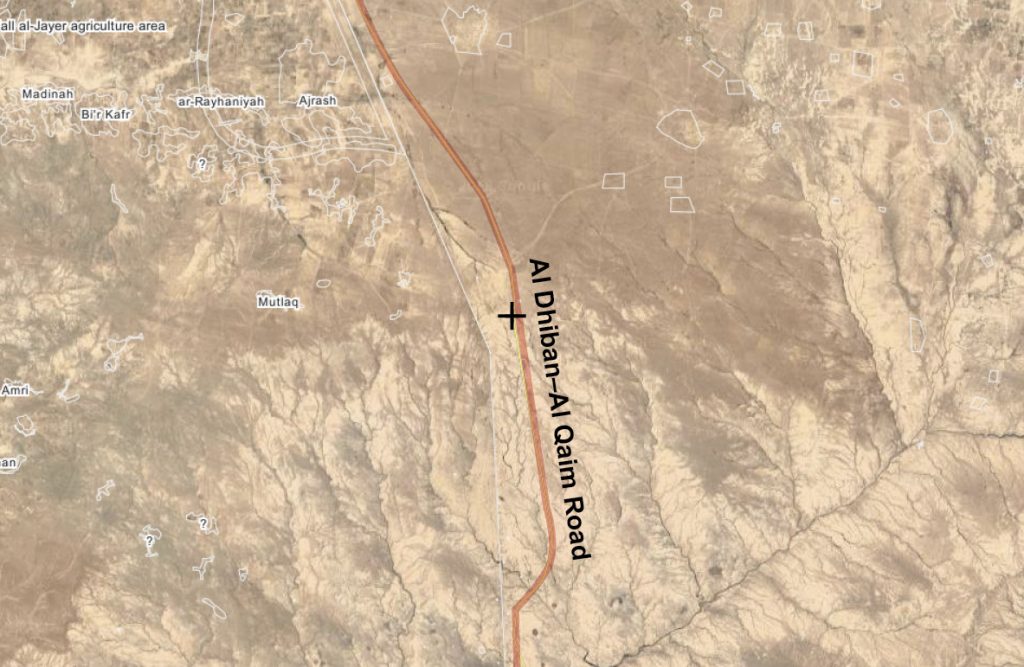 Reports of the incident mention that two alleged Coalition airstrikes hit a convoy of taxis traveling towards Baghdad, carrying civilians fleeing fighting in Mosul. The location of the first airstrike, at around 07:40 local time, was on the Al Dhiban – Al Qaim Road, “close to the town of Umm al-Dhiban”. Approximate location (provided by eyewitness): 36.123785, 41.297725 The second airstrike hit at around 08:40 local time on the Al Dhiban – Al Qaim Road, “close to the town of Umm Jereis” ( ام جريس ). Approximate location (provided by eyewitness): 35.862952, 41.383814