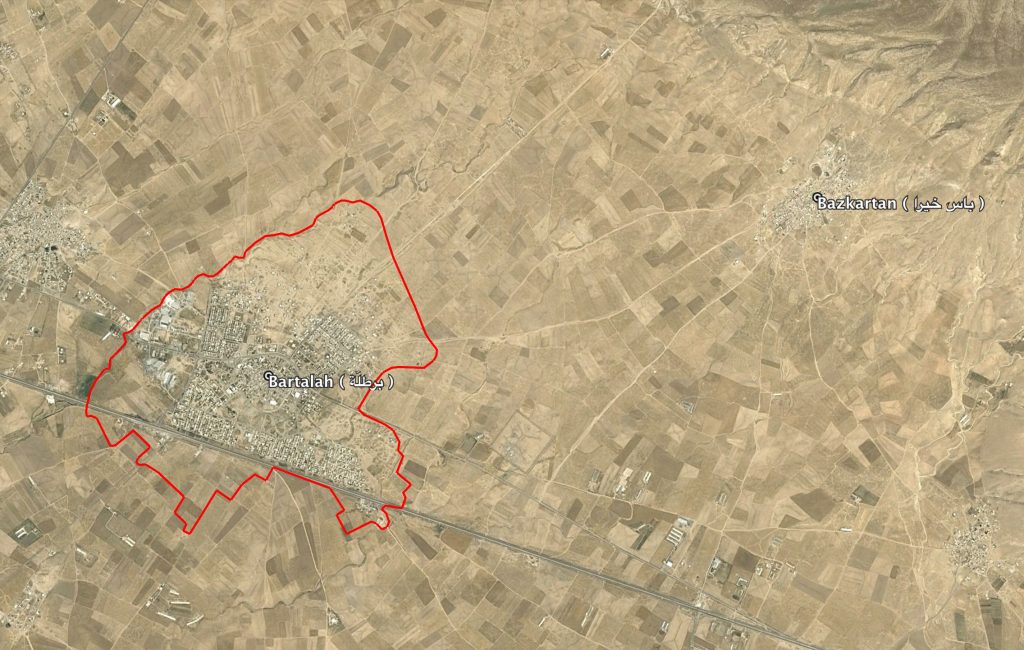 Boundary of Bartalah village ( برطلّة ) and Bazkartan village ( باس خيرا ) visible on the top left