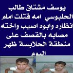 News Fallujah pictured a young survivor of the event, noting: “Yousif Mushtak Talib Al Halbusi : His mother was killed and his father( Mushtak Talib) and sister( Mariam) were injured today afternoon by the bombing.”