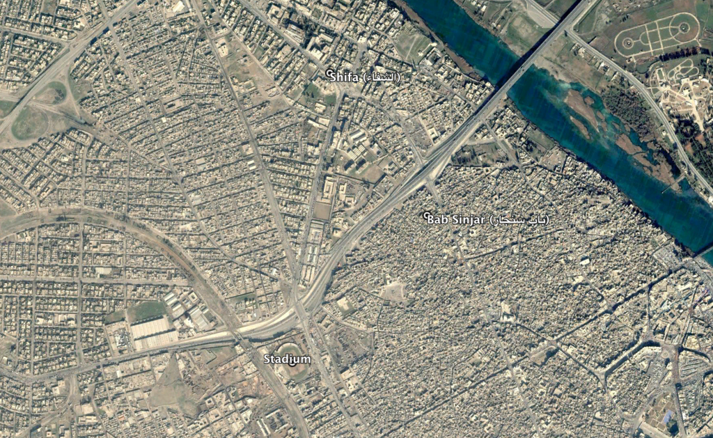 Neighbourhoods of Bab Sinjar and Shifa, in the vicinity of the Mosul Football Club stadium