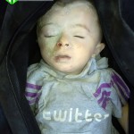 The one known exception is a picture which first appeared as a tweet on September 2nd, after a child was killed by the Assad regime. Shortly after the Kafr Daryan attack some three weeks later, that same image was claimed in English by at least one site to have been taken at Kafr Daryan.