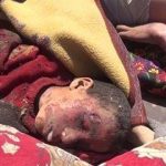 Another unnamed and injured survivor, a young girl, also spoke for the cameras:”The planes came above us and bombed us and destroyed houses. My father was killed and two of my sisters.”