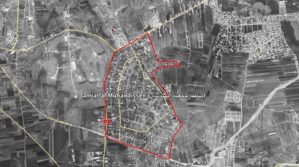 Reports mention the area of Jamiat al Muhandissen (منطقة جمعية المهندسين) in Orme al Kubra (أورم الكبرى), western Aleppo governorate, for which the coordinates are: 36.116944, 36.908611