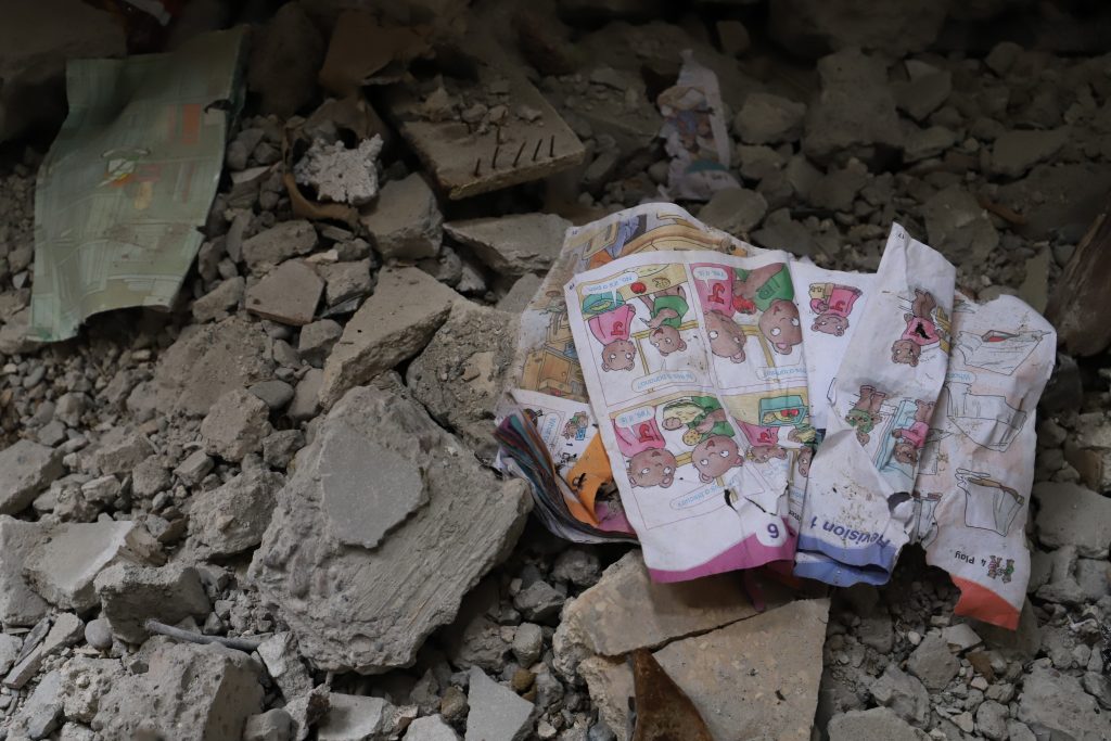 Amnesty’s field researcher reported that the family was internally displaced from elsewhere in the city. They left their own home when artillery shells struck the house and went to shelter in another house, and then another house and then another house and then this house. Several other relatives, including the two children’s parent, survived.