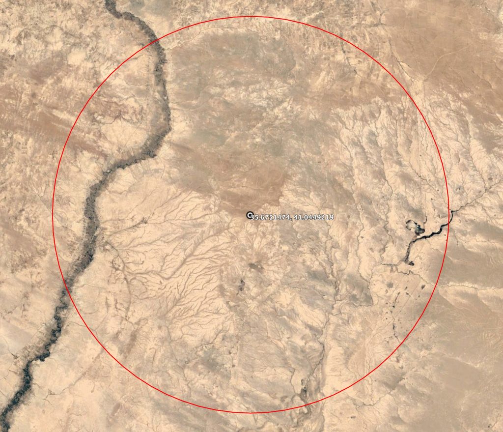 Midpoint of ISIS-controlled Al Hasakah, (35 km radius).