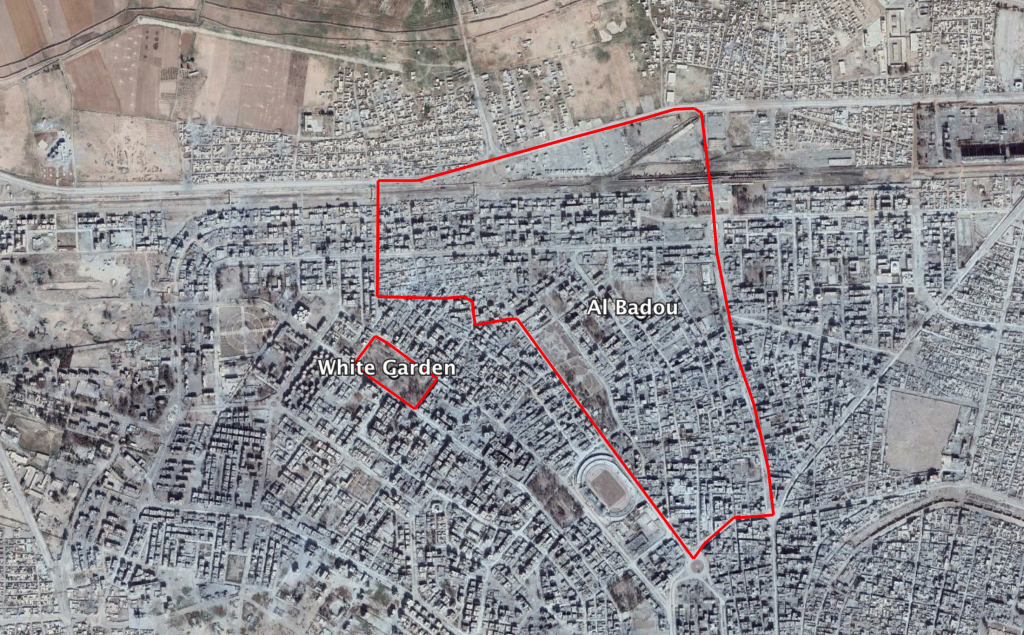 The White Garden (الحديقة البيضاء) and Al Badou (البدو) areas in the city of Raqqa
