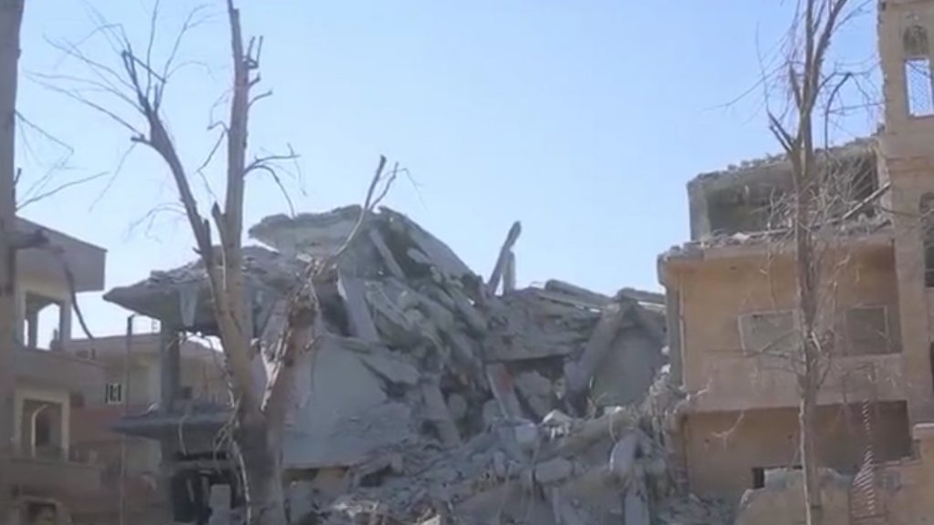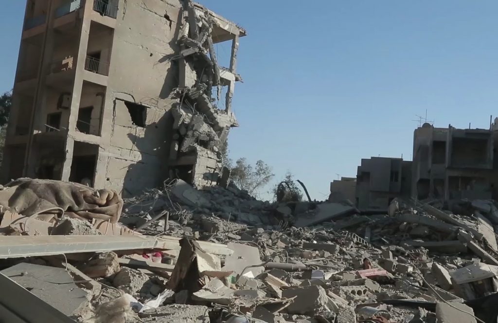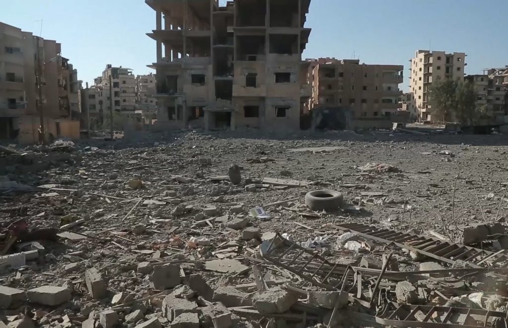 Reports of the incident mention the neighbourhood of Al Bedou (حارة البدو) in the city of Raqqa (الرقة). The images above show destroyed residential buildings in the neighbourhoods of Al Bedou (حارة البدو) and Al Huni, which appear to still be intact on satellite imagery of August 13. The coordinates for destroyed buildings seen on satellite imagery in the neighbourhood of Al Huni are: 35.952789, 39.002935 and 35.952589, 39.003187. This incident might also correspond to the destroyed buildings seen on satellite imagery in Al Bedou (حارة البدو) (“health housing – Hawari school district”), for which the coordinates are: 35.963119, 39.003409
