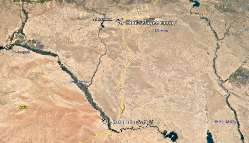 The town of Al-Matarada (المطاردة) and the Al-Hool refugee camp (مخیم الهول)