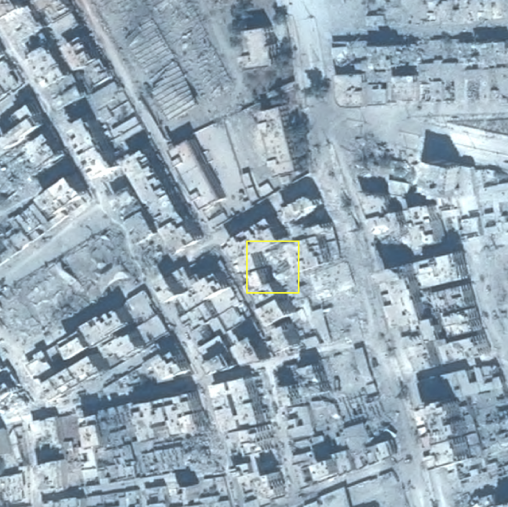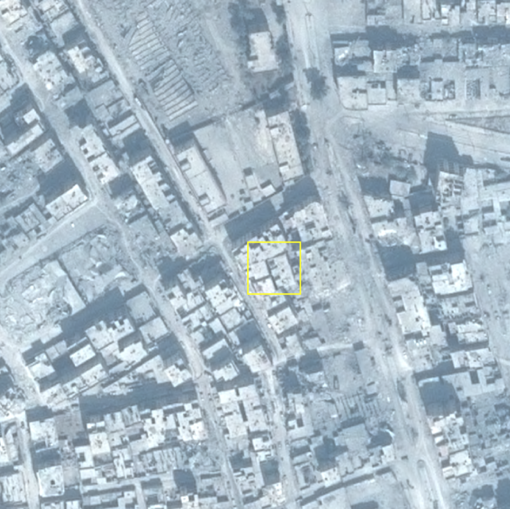 The destroyed building seen on satellite imagery after the strike (September 29, 2017)