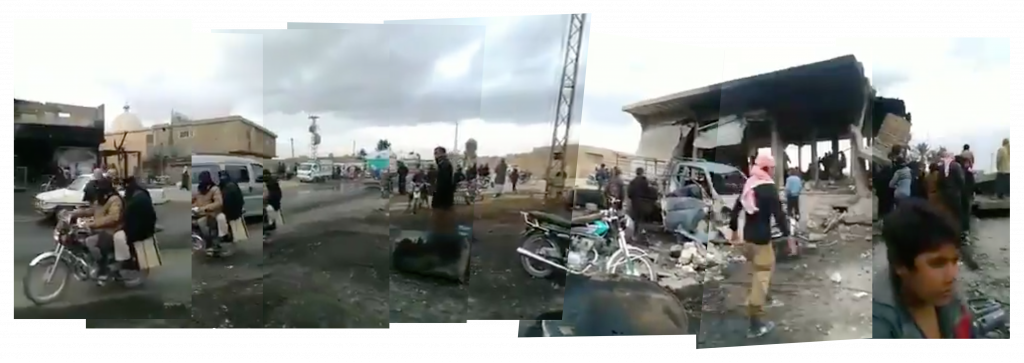 Reports of the incident mention a building in the village of Al Jarthi al Sharqi (الجردي الشرقي), for which the coordinates are: 34.8687930, 40.6480229. Satellite imagery analysis geolocated the image of a destroyed house posted on social media by Euphrates Post. Before (Dec. 03, 2017) and after (Dec. 26, 2017) images showed visible structural damage. Airwars does not have the rights to publish the images. The exact coordinates for the destroyed building are 34.884892, 40.635273. Further evidence of this can be seen in a separate video posted on Twitter by @Al_sharqnews