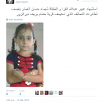 However, according to a tweet by Rania Daughter of Douma, these two people died in an alleged Coalition raid. Other sources also alleged that the Coalition was responsible. These included Homs Deir Ba’alba and Syria Rebels Gathering. Hassan Kanjo, self-described as an independent journalist, reported “a very violent bombing the extent of which has never been seen before in the city of Deir Ezzor by coalition planes“, while Aletihad Press said that Coalition warplanes carried out several raids killing “a number of civilians” including the six-year-old girl. The Syrian Network for Human Rights reported that “two civilians from the province of Homs were killed in a strike on the city of Deir Ezzor” – and said that the Coalition carried out the raid.