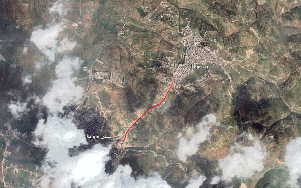 Reports of the incident mention a vehicle being struck on the road connecting the city of Salqin (سلقين) to the town of Isqat (إسقاط).