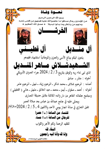 Among those killed during the strikes, Naher media identified “Shalash Maher Mandil” described as an Iranian militia militant from Deir Ezzor. @DeirEzzore posted an obituary of the combatant and said he was killed on February 3rd by an American bombing conducted “west of the monastery”. @DeirEzzore identified Ali Shawish, a Syrian regime lieutenant from Homs as a second combatant killed by American strikes, and posted a picture of the man in military uniform.