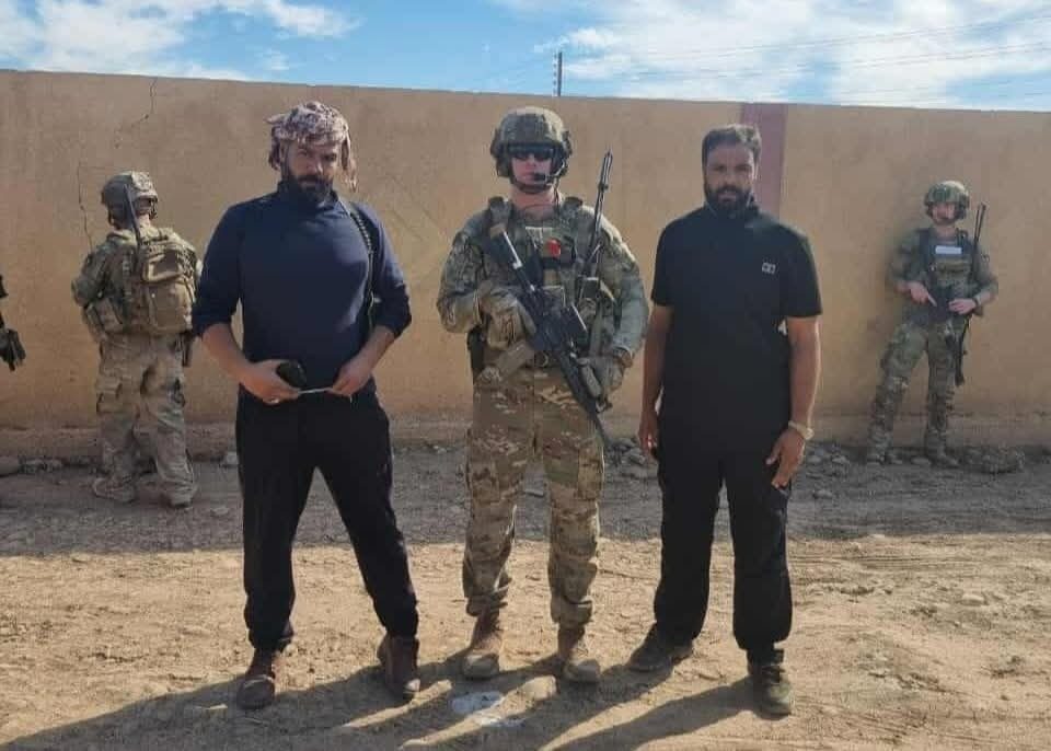 In his post referring to alleged condolences, Nawaf Hakim Al-Rakkad shared an image of brothers Ala’a and Ali standing with a soldier who appears to be affiliated with U.S. forces or the U.S.-led coalition. Others, including قناة ساعة حرة and مركز إعلام الحسكة also shared the photo.