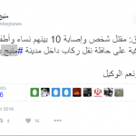 The main source appeared to be the Daesh news agency Al A’Maq. Manbij News reported: “Al A’maq agency: one person killed and ten others injured including women and children as a result of an american raid on a transport convoy inside the city of #Manbij in the #Aleppo countryside.” And Allies of the Islamic Caliphate noted: “One person killed and ten others injured including women and children as a result of an american raid on a transport convoy inside the city of Manbij in the Aleppo countryside.”