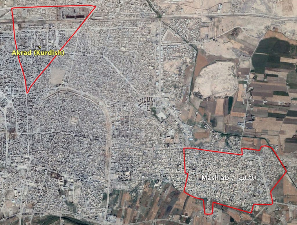 Al Akrad (Kurdish)/Al Thawrah (الثورة) and Al Mashlab (المشلب) in Raqqa.