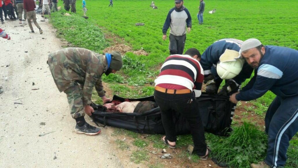 According to Baladi, “two civilians and four fighters were killed on Monday in a bombardment by an international coalition aircraft [sic] targeting the town of Sarmada in the countryside of Idlib.