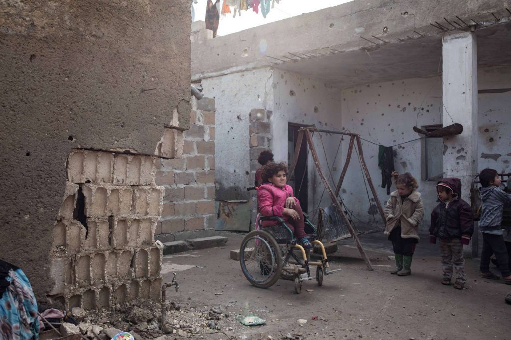 The joint Amnesty/Airwars report War in Raqqa: Rhetoric versus Reality notes: An artillery shell struck the kitchen of the Al-Mohammed family in Safa Street killing a mother and three of her daughters, and an elderly neighbour (F). Her other children were all injured. Fatima, nine, lost her right leg and her left leg was badly injured: “I was thrown across the yard by the explosion. I lost my right leg and I can’t stand on my left leg; it hurts me very much. When will I be able to walk again?”