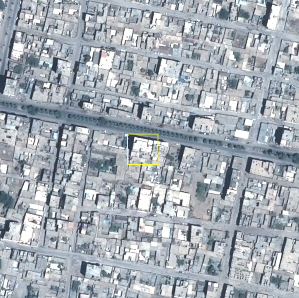 The building in which 4 members of the Thalji family were killed seen on satellite imagery before the strike (June 2, 2017)