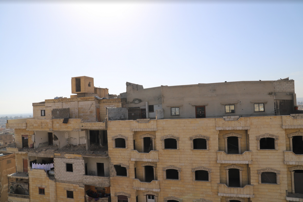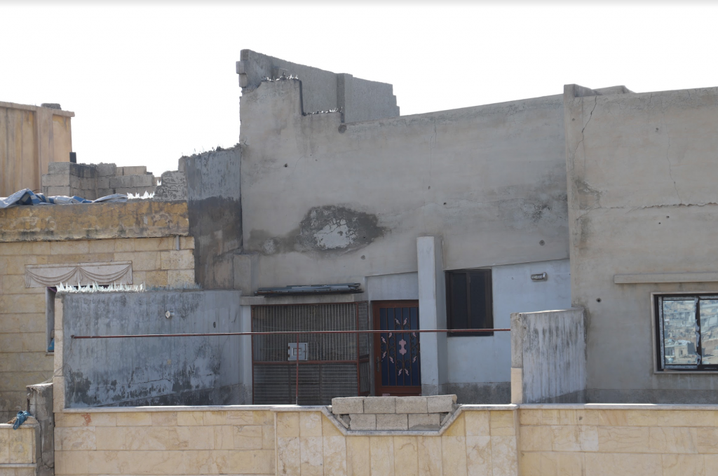 The building in which 4 members of the Thalji family were killed seen on satellite imagery after the strike (July 6, 2017)