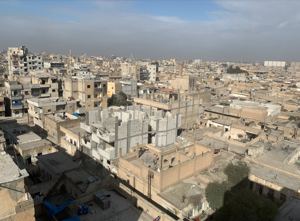 According to Mohammed Ottoman, “two artillery shells landed yesterday evening on the Thalji building on 23 February Street, east of Saif al-Dawla junction. Four people, three of them from the same family, were killed.”