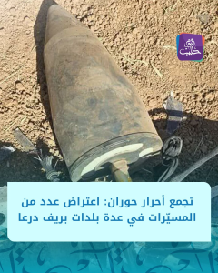 The news agency Daraa 24 posted a video on Facebook showing the interception of an alleged Iranian drone in the skies, followed by a loud explosion, which reportedly took place between the towns of Kahil and al-Taybeh and led to the injury of Thuraya al-Shahadah. The second part of the video showed a large crater near the tent.