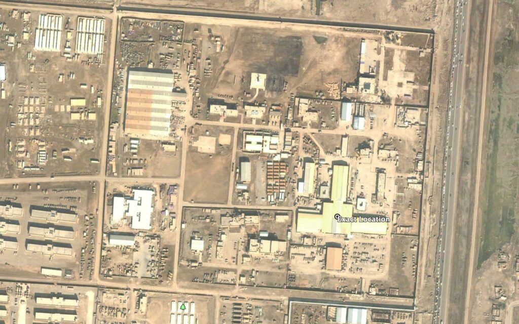 Reports of the incident mention a warehouse being struck within the Al Saqar Base (قاعدة الصقر). Analyizing audio-visual material from sources and comparing it to the location released by @ImageSatIntl, we can confirm that the exact coordinates are: 33.210878, 44.372361.
