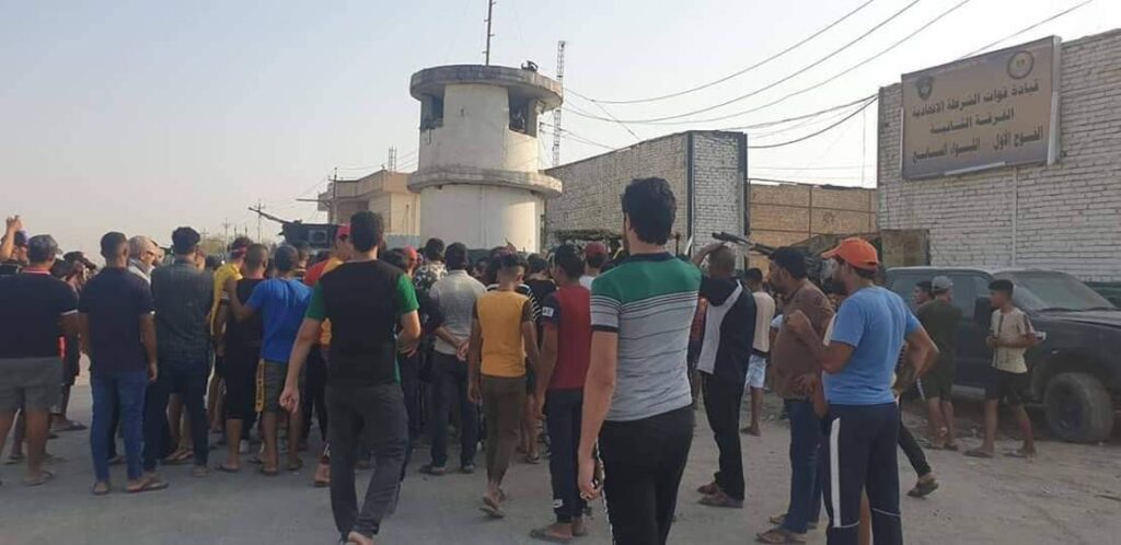 On August 13th, Huriyat News posted a photo of Baghdad residents who were affected by the event reportedly protesting for the removal and transfer of the Al Saqar base.