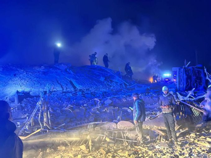 A Facebook account “Our village is better” shared a very emotional video showing a survivor of the strike who was sobbing over the death of his colleagues and said: “I have received the names of the martyrs, I just can’t tell you.” The video also showed an excavator and rescue workers working amidst debris and rubble left at the site of the building.