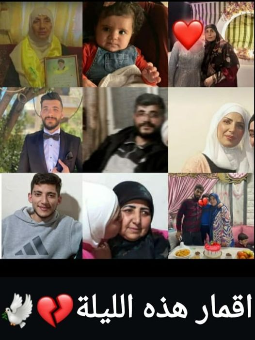 Testimonies mourning the civilian casualties of this attack were widely shared across social media. Many users posted tributes under the phrase “Martyrs of the town of Nabha” accompanied by pictures of the victims smiling and other pictures of the victims surrounded by family members. Other social media users mourned the loss of the young daughter of Mohammed Amhaz and Hawra Madlaj, Sama Muhammed Hussein Amhaz. One post by the family on Facebook stated that “the smallest coffins that leave our home are the heaviest on our hearts” while other social media tributes described Sama as the “youngest and happy today from the Nabha massacre”. These tributes also shared photos of young Sama, who appeared to be a toddler, showing her in a yellow and red animal-themed jumper smiling into the camera. A photograph shared of Sama’s father, Mohammed, shows him in a black cap and shirt. Another photograph, shared by Facebook user Kamal Raad, showed Abbas in glasses and a black puffer jacket, and his mother Souad in a white hijab; Kamal mourned the “brutality” of their deaths.