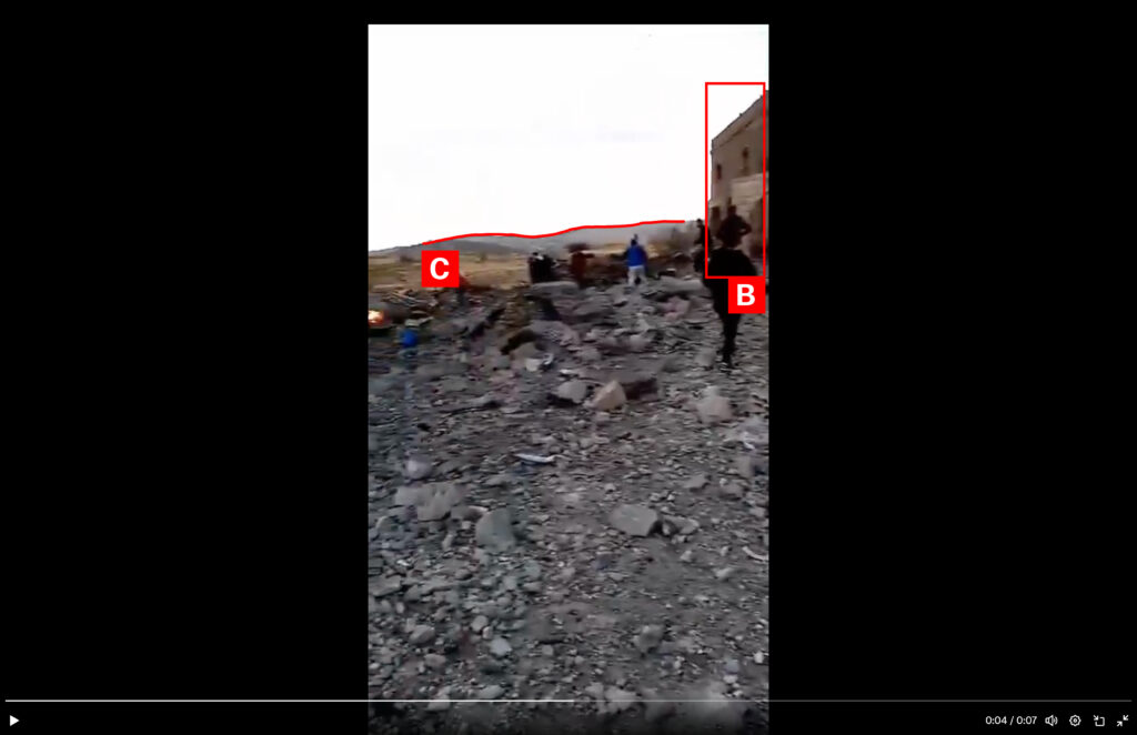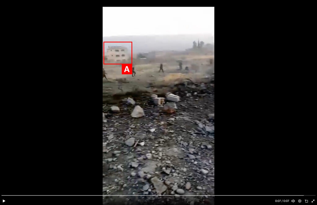 Reports of the incident mention a residential building being struck in the village of Nabha (نبحا) in Baalbek-Hermel Governorate (بعلبك – الهرمل). Analysing audio-visual material from sources, we have narrowed the location down to the following exact coordinates: 34.177330, 36.220809.