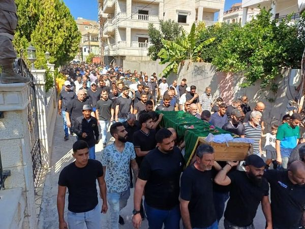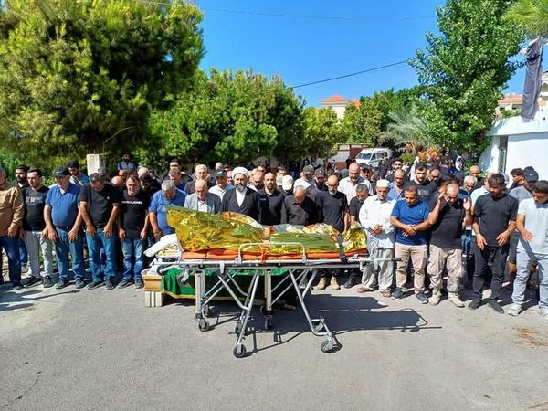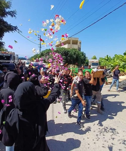 Mohammad Abbas Akoush was initially considered missing according to Bintjbeil’s Facebook post. A later post by Umm Fadi confirmed that he had been killed. Photos of him were shared showing a young man holding a water bottle and bottled Starbucks coffee, smiling at the camera. His brother, Ali Abbas Akoush was also killed in the airstrike. Facebook user “El Khreib” shared with a video of the funeral of the Akoush brothers and Fadl Jamal al-Nabulsi, who was also killed in the strike. A large group of men can be seen carrying their caskets. Women released flower petals as they carried them through the streets. Both caskets were covered in green wrapping with yellow trim, which are the colours of the Hezbollah flag, though no logo was directly visible. Hezbollah flags and political affiliations with the group are common in the area but do not necessarily indicate membership of Hezbollah’s militant wing. Therefore neither brother have been counted as militants by Airwars; this assessment will be updated should further information come to light.