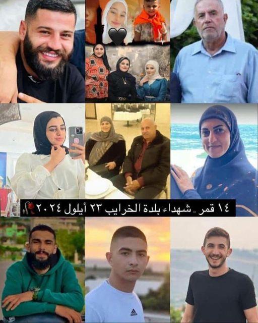 Fourteen civilians, including multiple women and at least one child, were killed and a number of civilians were injured in an alleged Israeli airstrike on the Al-Kharayeb neighbourhood in the Sidon district in the Southern Governorate of Lebanon on Monday, 23rd of September 2024.