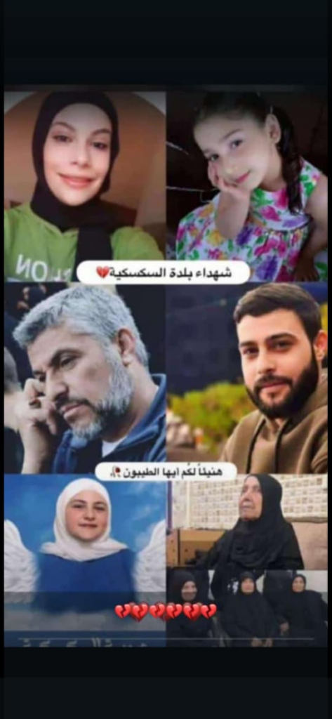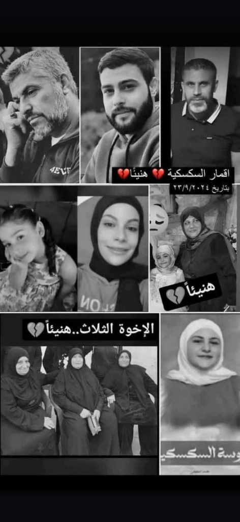 This incident originally reflected this post from Speak for Palestine – Journalist, and included members of the Al-Arab and Abbas families who were also reportedly killed in Al-Saksakieh on September 23rd. The original incident also named Nadia Abbas Heider as among those killed. However, as only once source shared that Nadia was killed on September 23rd, a source that named Nadia alongside members of the Abbas family, coupled with the fact that testimonies shared by other members of the Haider family did not mention the loss of Nadia, she has been included in the upper casualty range only. This will be updated should additional information come to light.