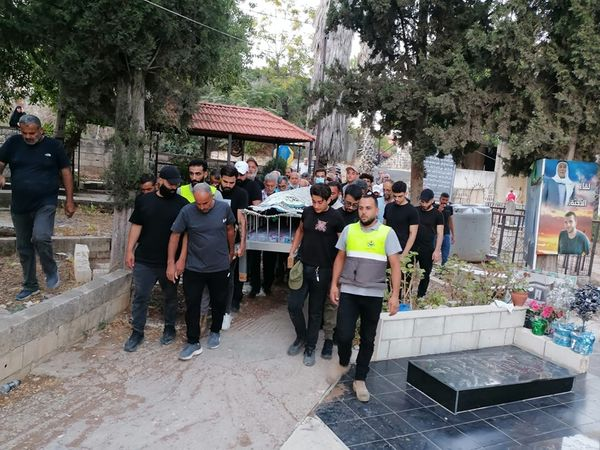 Websites South Braikeh and South 24 shared pictures from the Haribi family’s funeral, which featured the transportation of bodies, funeral prayer, and fresh tombs made of white marble slabs.