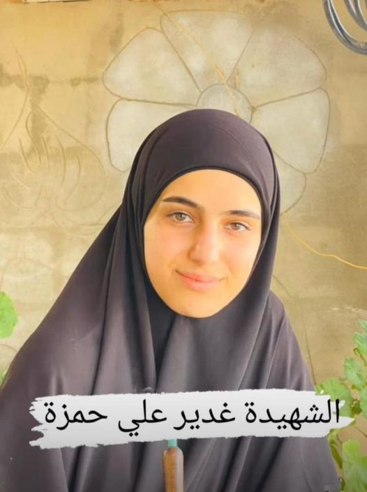 Talia Hamzeh, a cousin of the late Ghadeer Ali Hamza, mourned the death of the young woman, writing “May God be with you, Ghadeer Bakir, my love” and adding a headshot of a young woman with green eyes wearing a black headscarf.