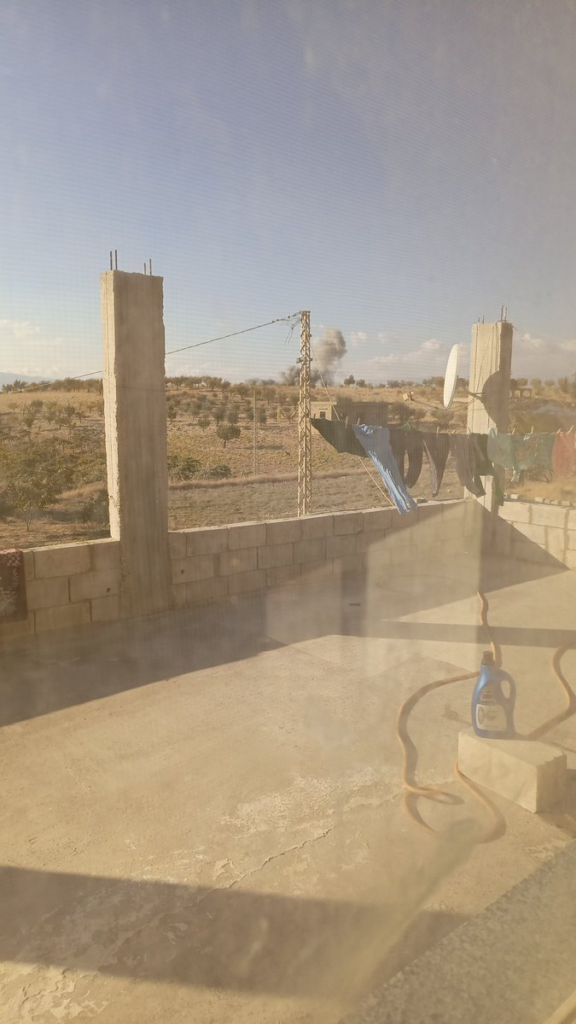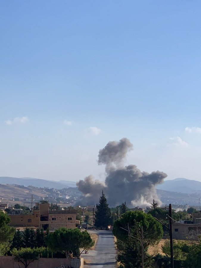 Shehab Agency and Twitter/X user @raedAlyamani wrote about raids on the towns of Al-Khader and Brital in the Bekaa Governorate and shared an image where a thick cloud of smoke can be seen rising over a town while mountains can be seen in the background. Twitter/X user @HamzeMayssae posted another photo showing the smoke from the explosion from another angle.