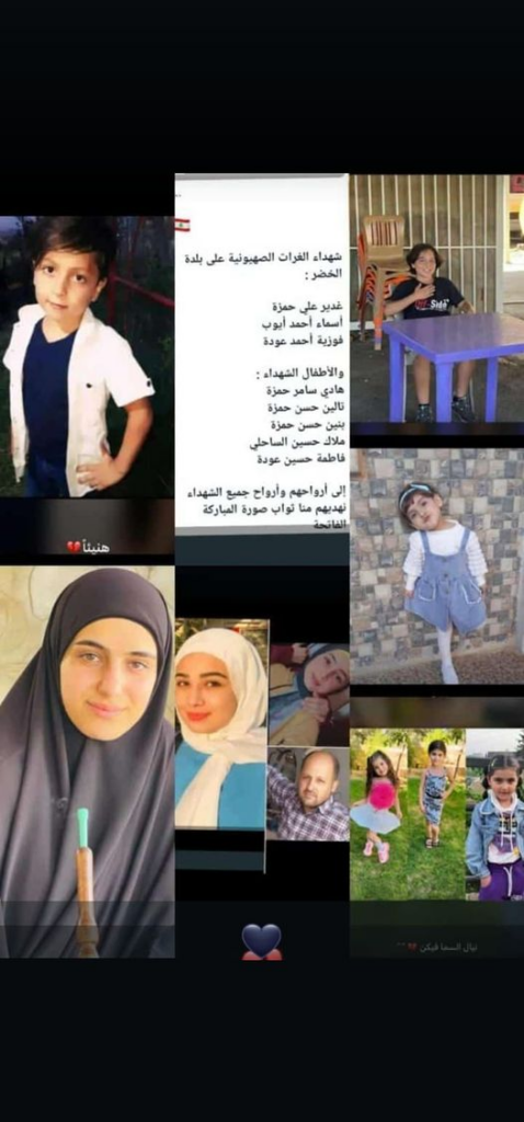 “Al-Лhodor Village” Facebook account posted a collage with the pictures of the victims featuring six girls and one boy, three young women, one elderly woman, and one man, apparently Muhammad Hussein Odeh – a bald man wearing glasses. The post wished “a speedy recovery to our wounded, and patience and steadfastness to our hearts.”