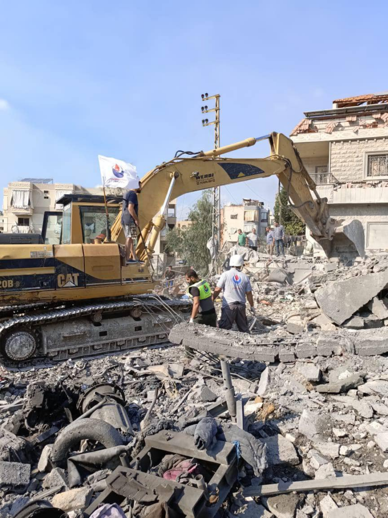 Posts emphasised the initial rescue efforts: Facebook user Ali Khaled first posted that five civilians had been killed and a number of people had been wounded in the bombing, and that ambulance, relief, and civil defense crews were working to remove the rubble and transport the injured. The post was accompanied by a video which showed a fire truck was working to extinguish a fire. Further images posted by Souhail Mahmood show civil defense members working with excavation equipment amid the extensive rubble. User @alkawthartvir posted to X (formerly Twitter) that the bombing resulted in “massive destruction”, and shared video and images showing significant damage to several buildings.