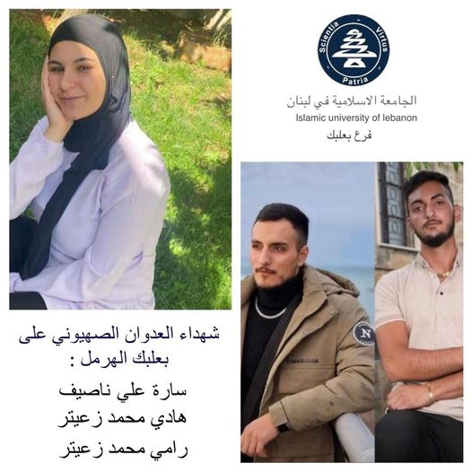 Islamic University of Lebanon also mourned the death of its two students, placing their pictures on its photo collage.