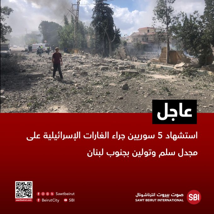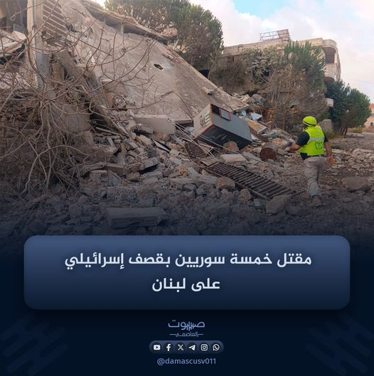 According to al-Quds al-Arabi News, “Lebanese media and Syrian sources said that four Syrians were killed in Israeli raids on the town of Majdal Salam.” It further explained that “the Syrian Observatory for Human Rights said that five Syrians from one family, including three children, were martyred as a result of the Israeli raids in Majdal Salam and Al-Khiyam, south of Lebanon. They were from the town of Urem al-Kubra in the western countryside of Aleppo.” @syrianewsag tweeted “The Lebanese Al-Akhbar newspaper confirms the killing of four Syrians in the town of Majdal Salam…in a preliminary toll of the Israeli raids on southern Lebanon.”