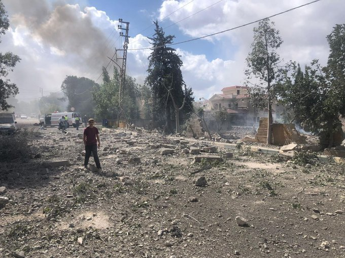 Facebook accounts Sheikh Ismail Zakariya and Ali Barakat shared videos of plumes of smoke from the attack, with the first account describing “a number of injuries in Majdal Salam, al-Musaliyah area, Lebanon: the beginning of World War III.” In the second video, a series of explosions can be heard as clouds of debris rise from various parts of town.