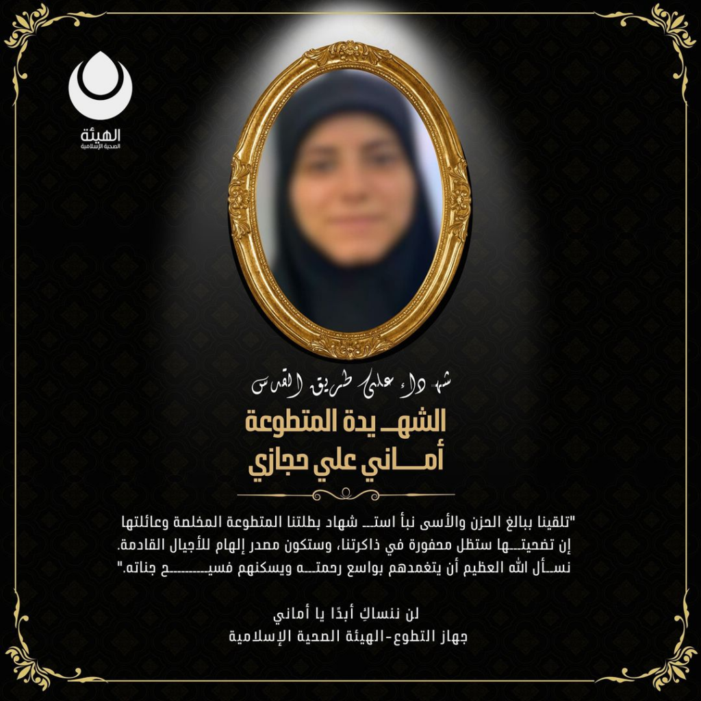 In another post by Janob, Amani Ali Hijazi was mourned with a message: “It is difficult for us, Amani, to mourn you. We will always miss you.” He added that Amani was a volunteer for the Islamic Health Authority and added an image where she was remembered on behalf of the organisation Islamic Health Authority: “Her sacrifice will remain engraved in our memory and will be a source of inspiration for generations to come.” The Islamic Health Authority is a civil defense group that is associated with Hezbollah. While Hezbollah operates an active militant wing, their political presence is also deeply enmeshed within the state, providing social and organisational services, primarily in the Shia’a majority areas in Southern Lebanon, the Beqaa Valley, and the suburbs of Beirut. With this context in mind, and given that there are no indications of militant activities, the presence of the Islamic Health Authority cannot be used to determine if an individual or community is affiliated with Hezbollah’s armed wing, or that there was a militant presence in the area.