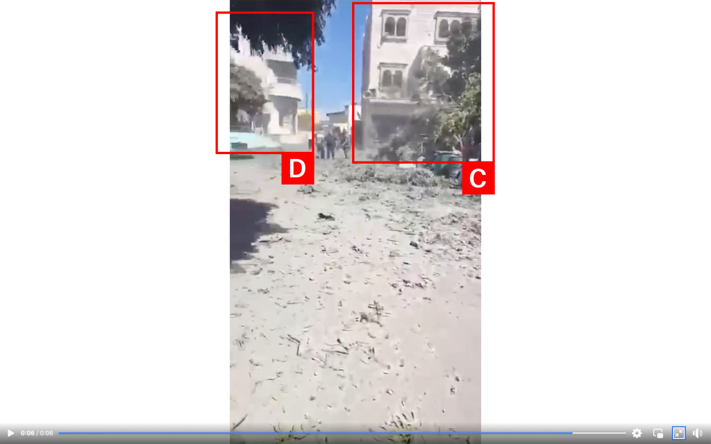 Facebook user Jwaya First shared a video purporting to document the aftermath of the strike: people can be hear shouting in the distance, as the video pans over debris and dust.
