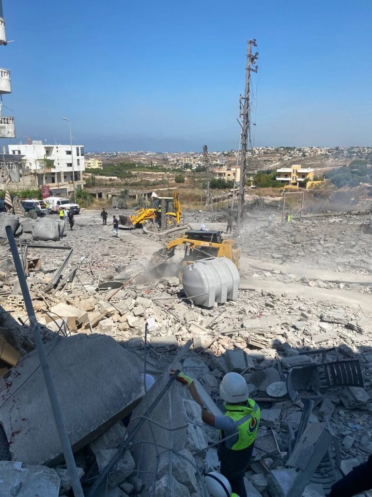A post shared by Ahmad Hamieh and timestamped at 8:35 a.m. showed civil defense members at what appears to be a strike site – water barrels are strewn about and a home lies in ruin, while the neighbouring buildings are pocketed with signs of a nearby strike. The video is captioned “From the strike on Al-Bazouriyya.” As the caption does not mention civilian harm, and the imagery presented does not match the imagery shared by others, including the girls’ mother Rokaya, it appears that there were multiple strikes in Al-Bazouriyya on the 25th – and perhaps not all resulted in civilian harm.