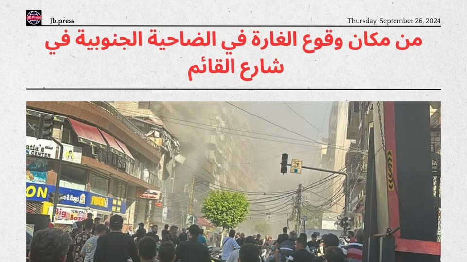 At around 3 p.m. on Thursday, September 26, 2024, a declared Israeli airstrike struck a residential building four times on Hadi Nasrallah Street/Al-Qaim Street in the Al-Qaim area of Dahiyeh, southern Beirut, Lebanon. Some sources reported that the “Tasty” restaurant was located in the building that had been hit. The attack killed at least two people and injured up to 17 others. The Israel Defense Forces (IDF) claimed that the strike killed Mohamed Hussein Sarour – also known as Abu Saleh – the commander of Hezbollah’s aerial unit.