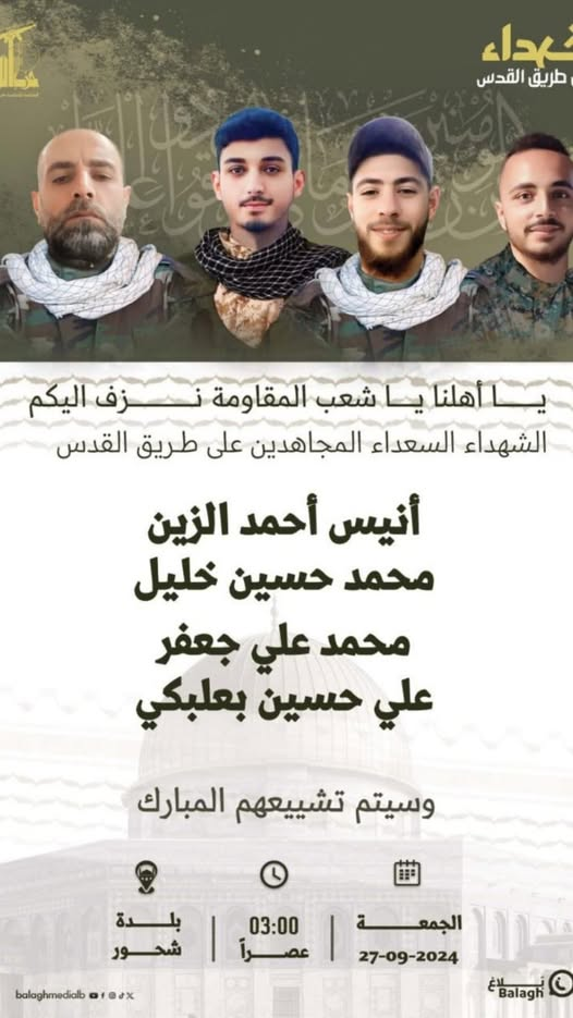 On September 26th, 2024, the town of Shuhour in Southern Lebanon was reportedly struck by an alleged Israeli raid, resulting in reported “injuries” of civilians and the death of four men who have been identified as Hezbollah militants.