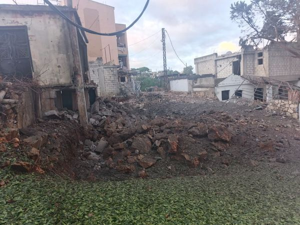 Images from multiple sources capture the aftermath of airstrikes in Kfar Reman. X users @thisislebnews and @Ertikaznews shared a video showing smoke rising from a residential area following the airstrikes. GLIS MEDIA Facebook page posted a series of photographs: one image depicted severely damaged buildings and scattered debris, another showed what appears to be rescue workers walking on rubble near partially collapsed buildings and homes, and a third image showed a white car, damaged and covered in debris.